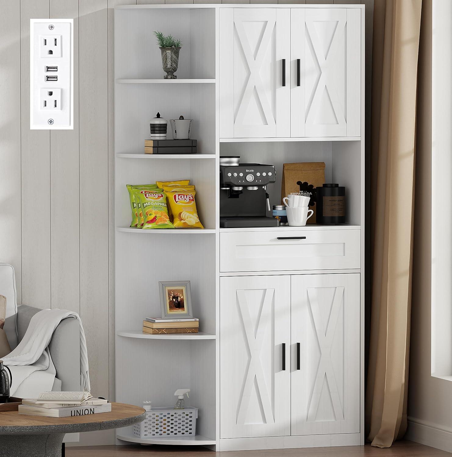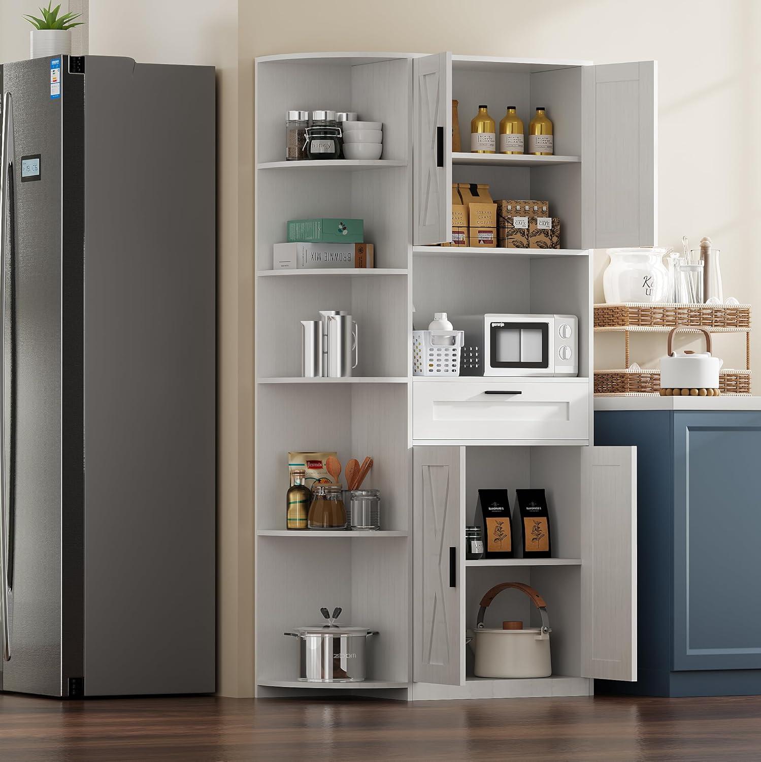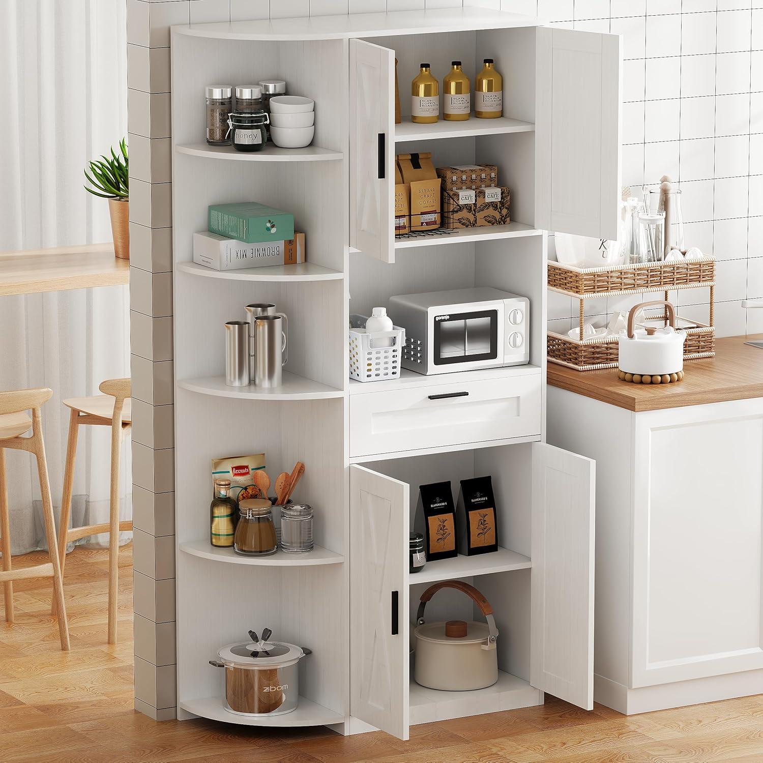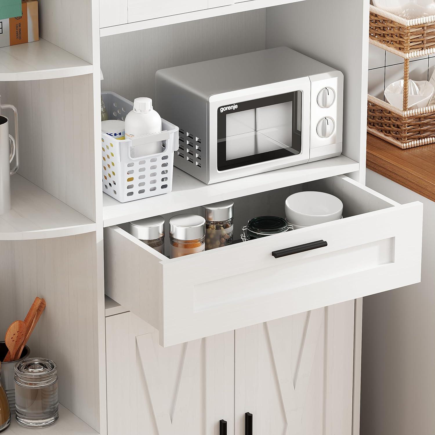 STABLE QUALITY: Our farmhouse style pantry cabinet are made of quality MDF wood and can bear 350 pounds. The product is also equipped with an anti-dumping design to prevent shaking during use, ensuring safety, solidity and durability