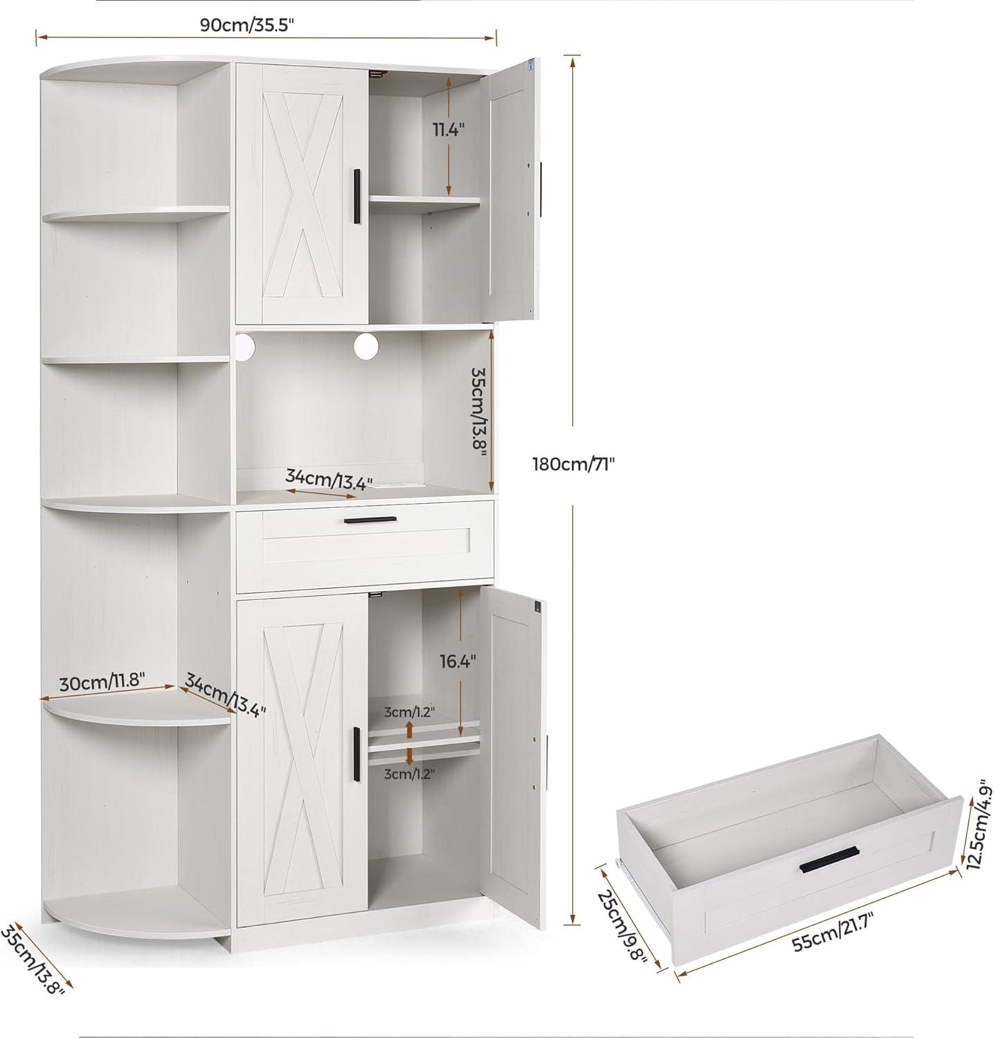 ANWBROAD 71" Farmhouse Kitchen Pantry Cabinet Pantry Storage Cabinet with Barn Doors and Adjustable Shelves Large Food Hutch with Drawers for Dining Room Kitchen Bathroom ULBS004W