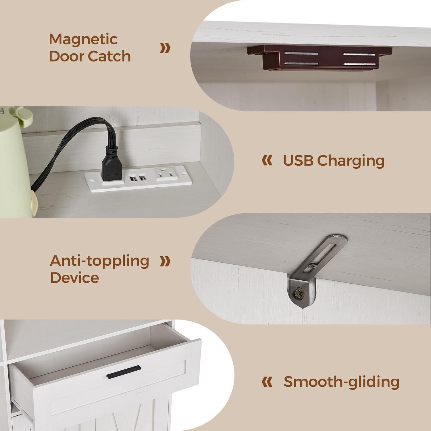 MULTIFUNCTIONAL STORAGE CABINET: This farmhouse style kitchen hutch cabinet has a multifunctional design and style. It can not only be placed in the kitchen to organize your kitchen utensils, but can also be used as a buffet cabinet, a coffee bar in the living room, or a console table in the hallway,It has its value no matter where it is placed