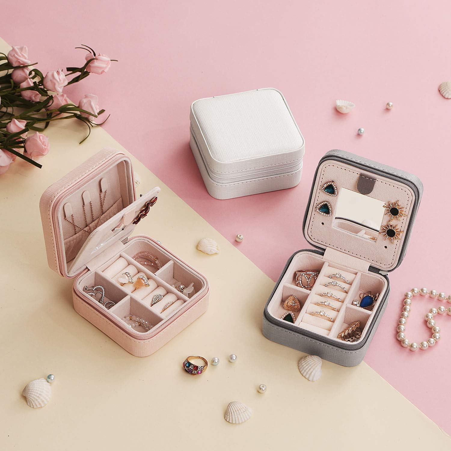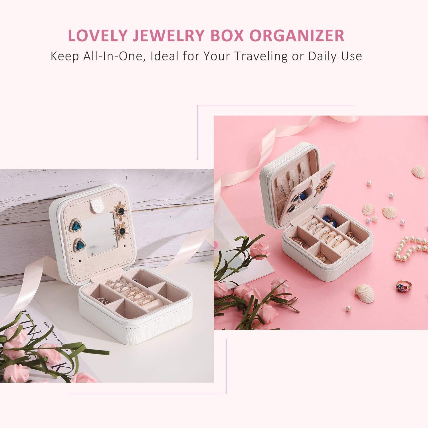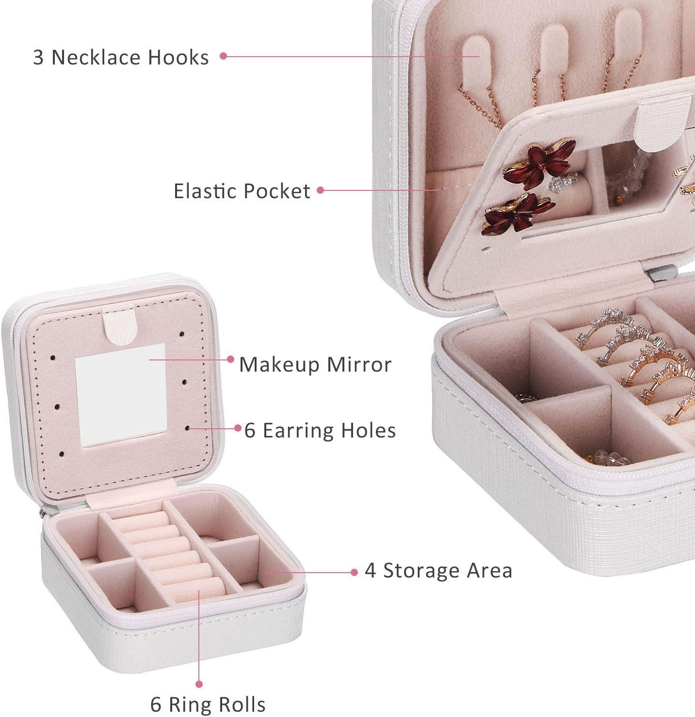 【PORTABLE SIZE FOR TRAVEL】No tangled jewelry with this mini travel jewellery box. Dimension: 10 x 10 x 5.5cm(L x W x H). This jewelry case keeps your daily jewelry organized and it is portable to be placed in your handbag or luggage. It is great for holiday, overnight stays, weekends away, business trip and so on.