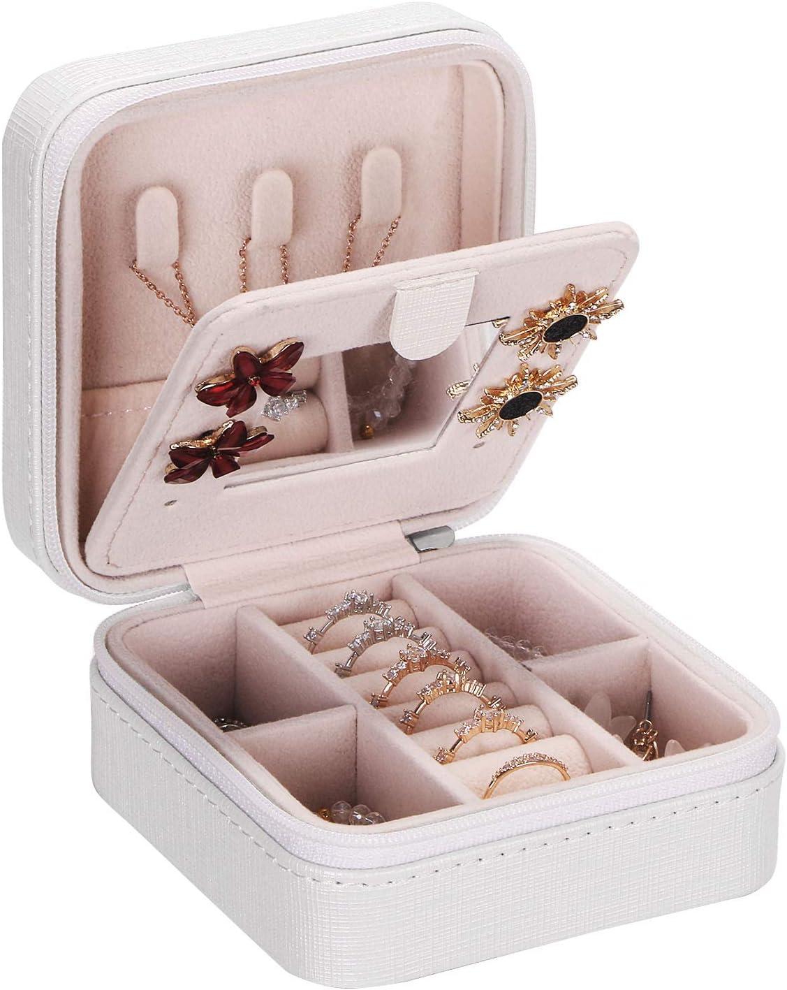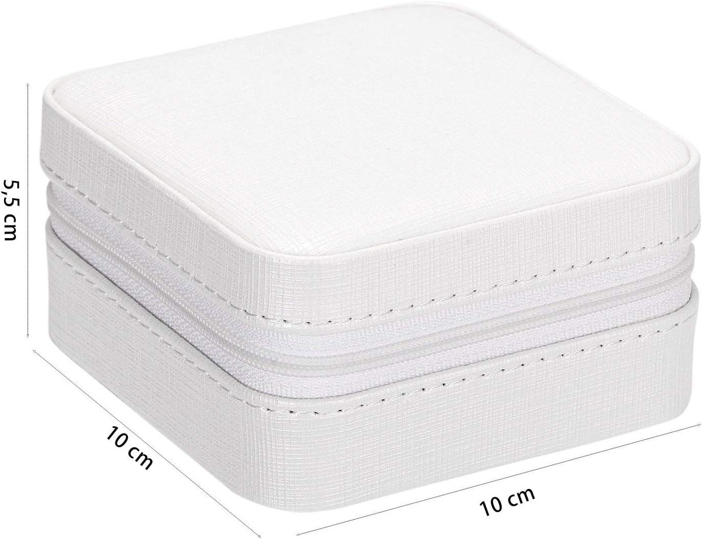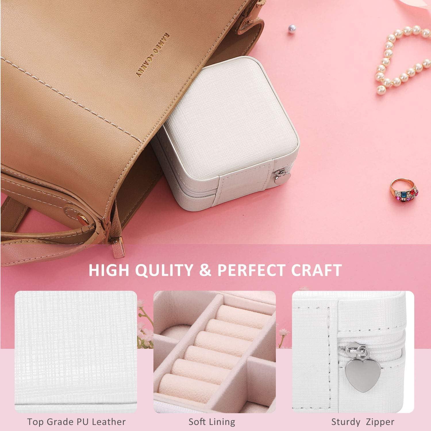 【PORTABLE SIZE FOR TRAVEL】No tangled jewelry with this mini travel jewellery box. Dimension: 10 x 10 x 5.5cm(L x W x H). This jewelry case keeps your daily jewelry organized and it is portable to be placed in your handbag or luggage. It is great for holiday, overnight stays, weekends away, business trip and so on.