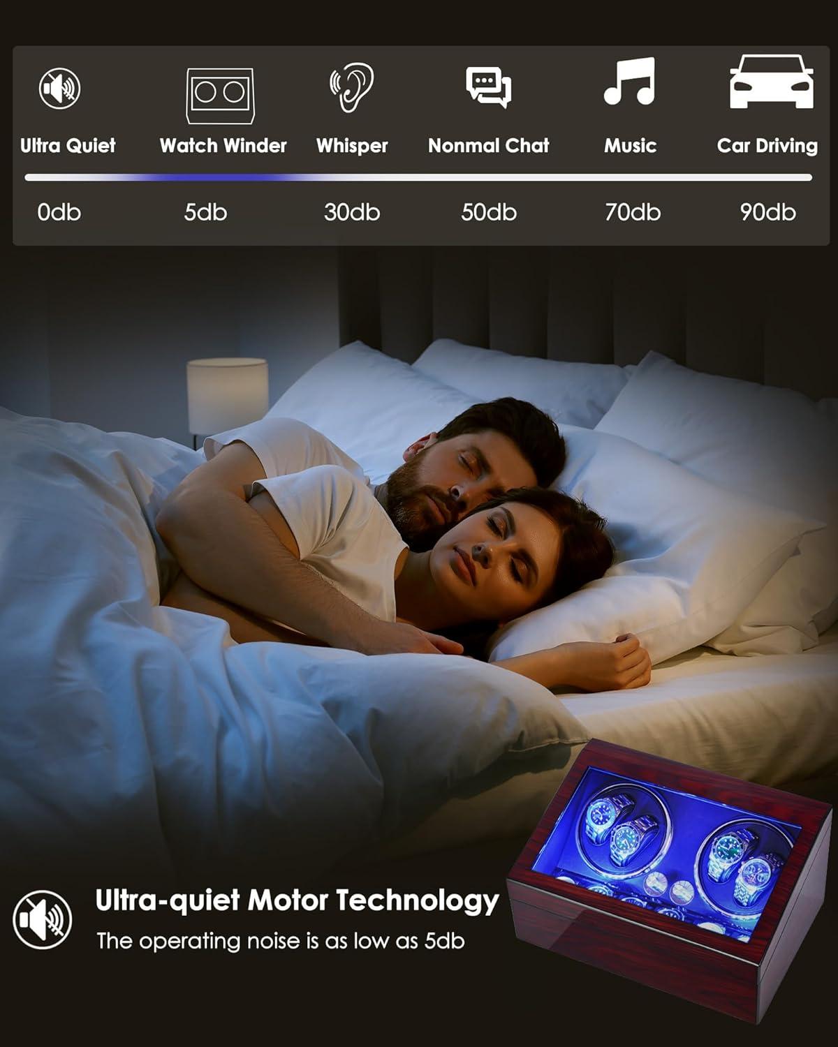 SUPER QUIET MABUCHI MOTOR : The sound of this watch rotator is only 5 decibels during operation, barely audible, even on quiet nights without disturbing your sleep. So you can use it in your bedroom or office,Using Japanese Mabozhi motors, with a long service life