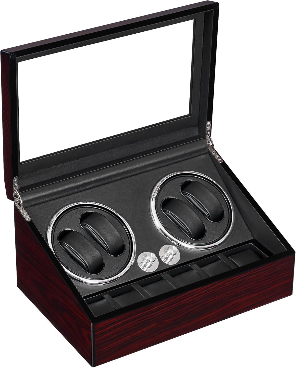 4+6 WATCH WINDER: 4 winding slots and 6 storage slots for organizing your watches. 4 watch pillows with pillow rings, suitable for watches of different girths. 6 movable watch pillows can be used as jewelry boxes to store jewelry. 2 motors can operate separately, selecting different modes while meeting different watches
